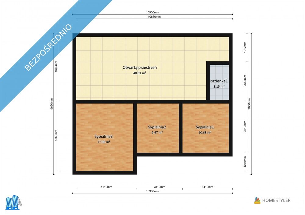 o Parter: duży, dwupokojowy salon, osobna kuchnia, łazienka oraz wygodna sypialnia.